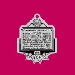 Marshall University Annual Ornaments These are the ornaments currently available for Marshall University. The series began in 1991, if you are interested in past ornament issues, please call, fax, write or e-mail us. We will be extremely happy to provide you with the availability of that year's ornament. Click on any image to see the actual size. | ||||||||